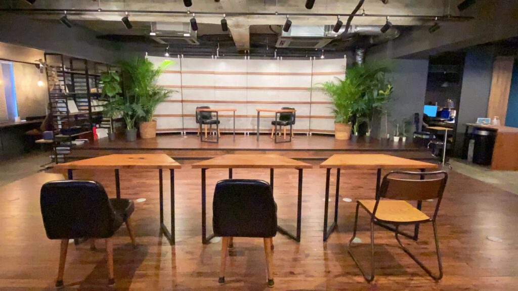 配信・撮影・インタビューでもご利用可能です! 配信・撮影・インタビューRANATAIL インタビューや配信でご利用いただいたときのレイアウトをご紹介いたします。 こちらのレイアウトでは舞台(追加オプション)がついています。 #貸会議室 #レンタルスペース #南森町 #大阪 #梅田 #オフ会 #撮影 #インタビュー #オフサイトミーティング ご利用例 ご利用レイアウト例 RANATAIL